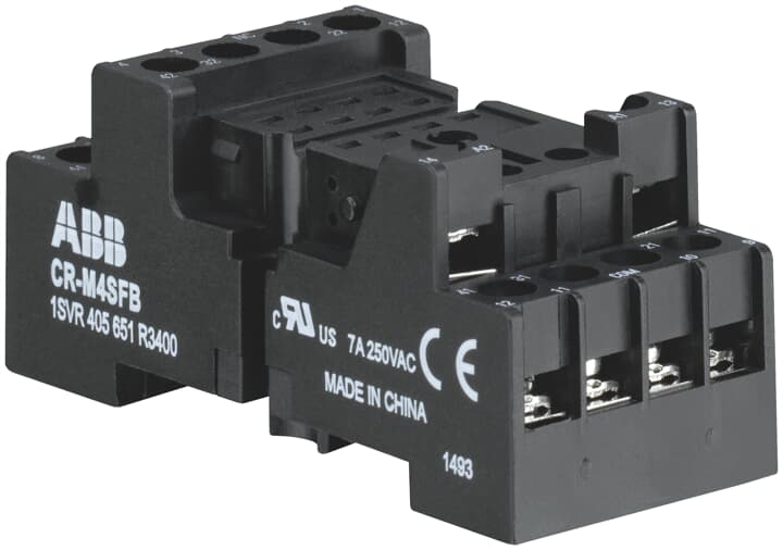 CR-MX (miniature) röle serisine ait olan CR-M2SFB standard soket, 2 değiştirici kontaklı (2 c/o, SPDT) CR-MX röleleri için uygundur.